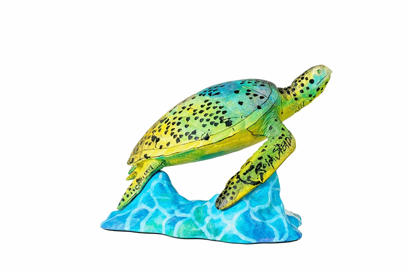 Myrtle the Turtle brings the two-dimensional drawing from The Gonzovation Trilogy by Ralph Steadman and Ceri Levy into the three-dimensional world. Myrtle is one of the most popular artworks of the 300 drawings in the collection.