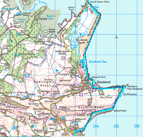 Route: Worth Matravers to Shell Bay, Studland