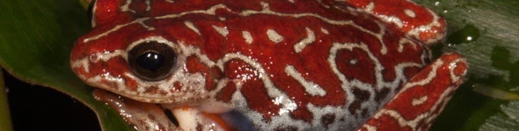 The Togo slippery frog is found in the highlands along the border of Togo and Ghana; the Golden Mantella Frog